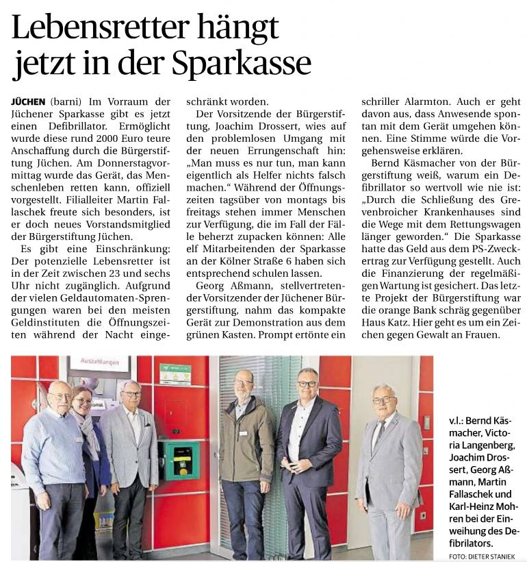 startet mit Joachim Drossert als Vorsitzender der Bürgerstiftung Jüchen